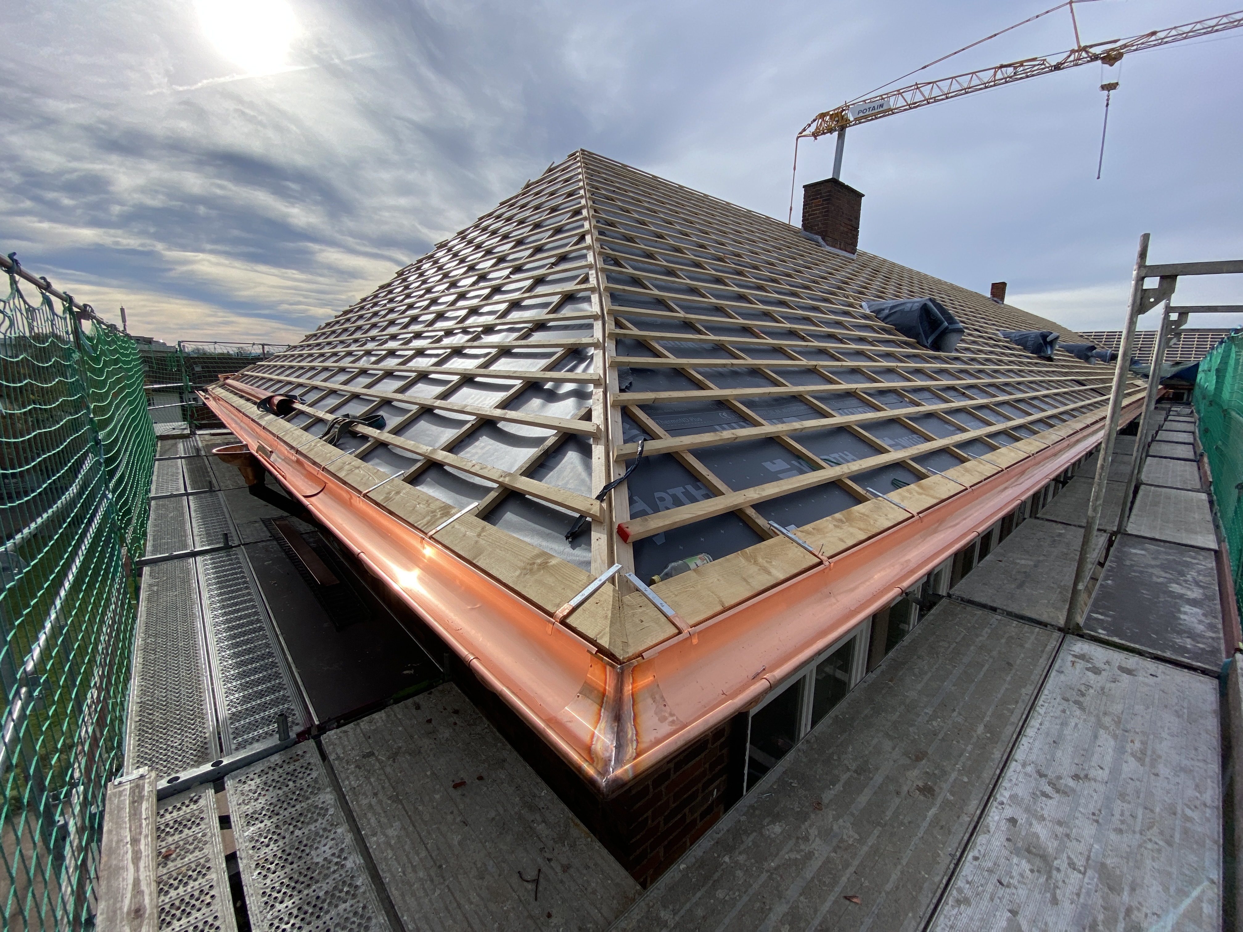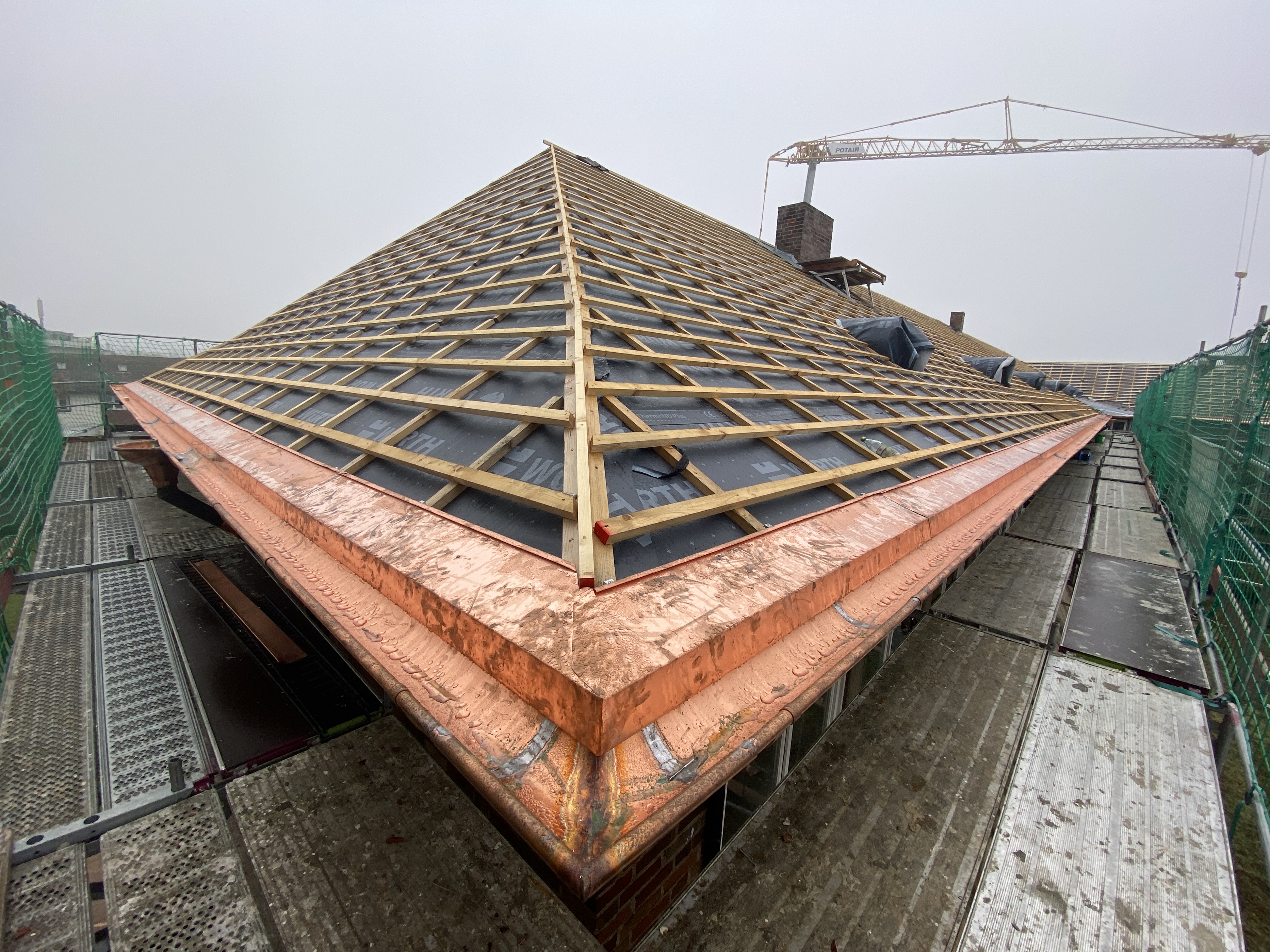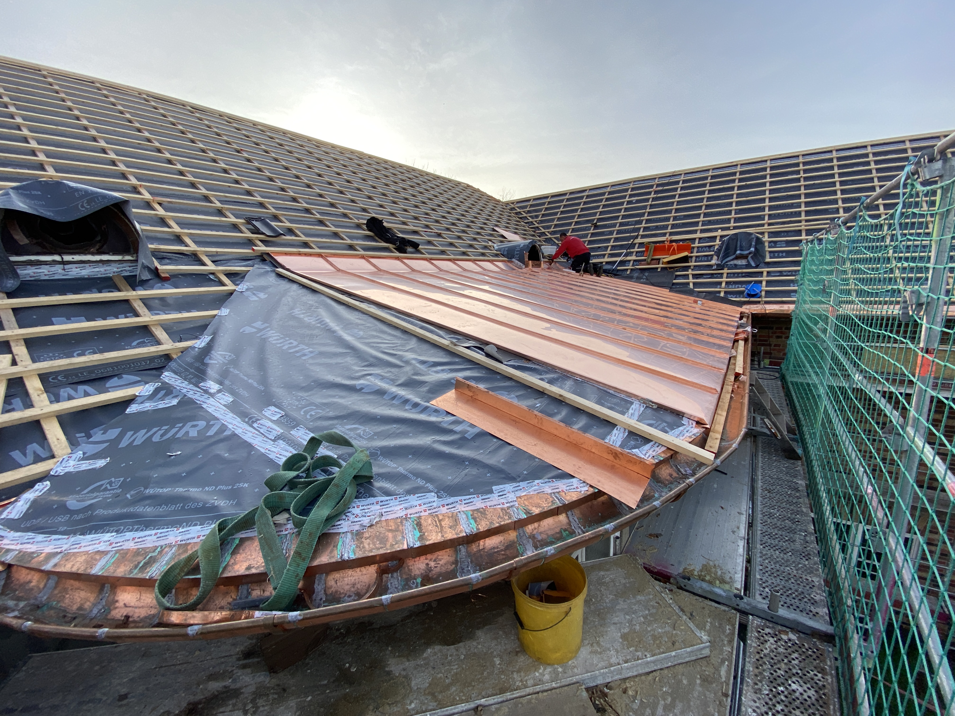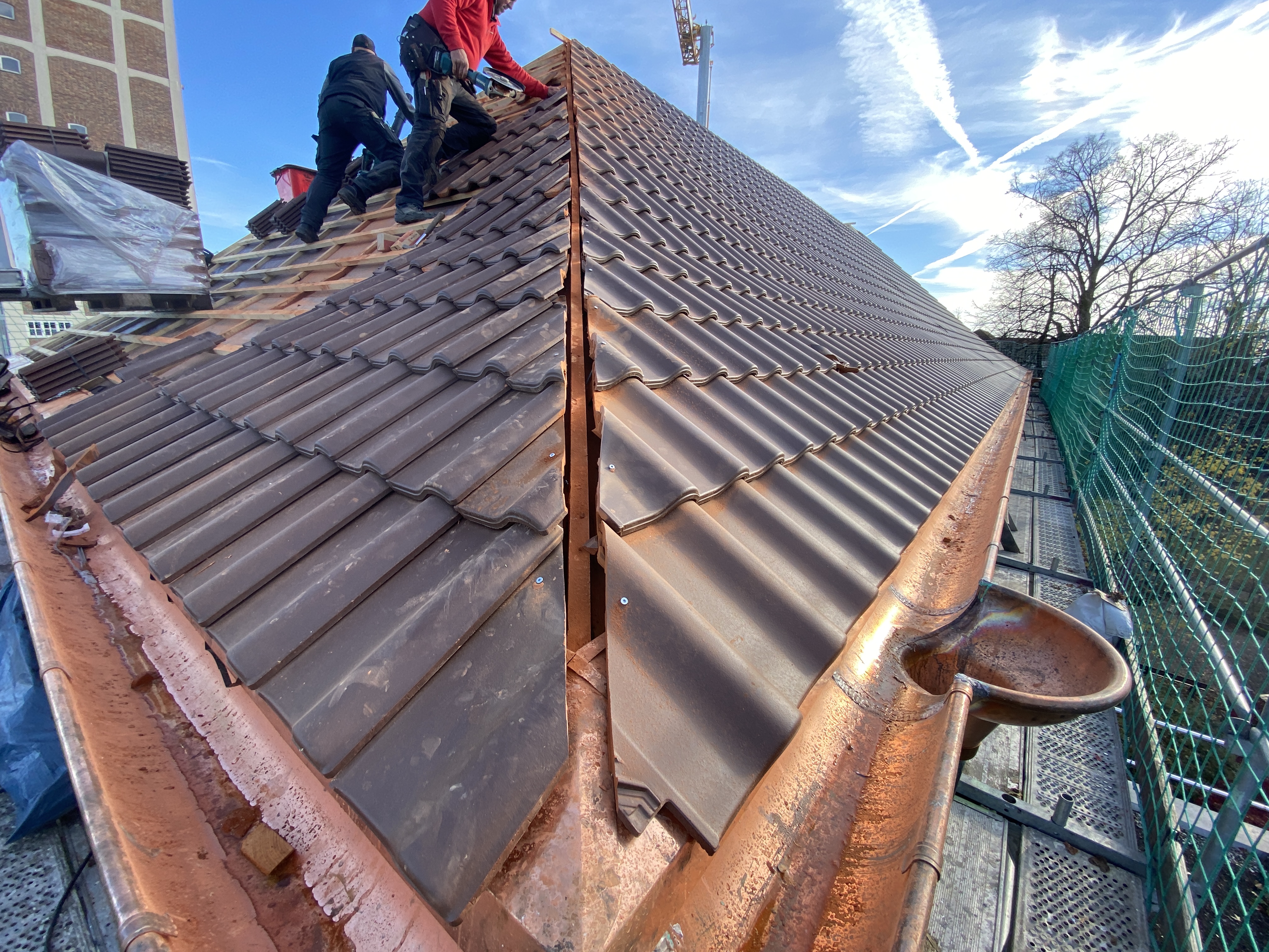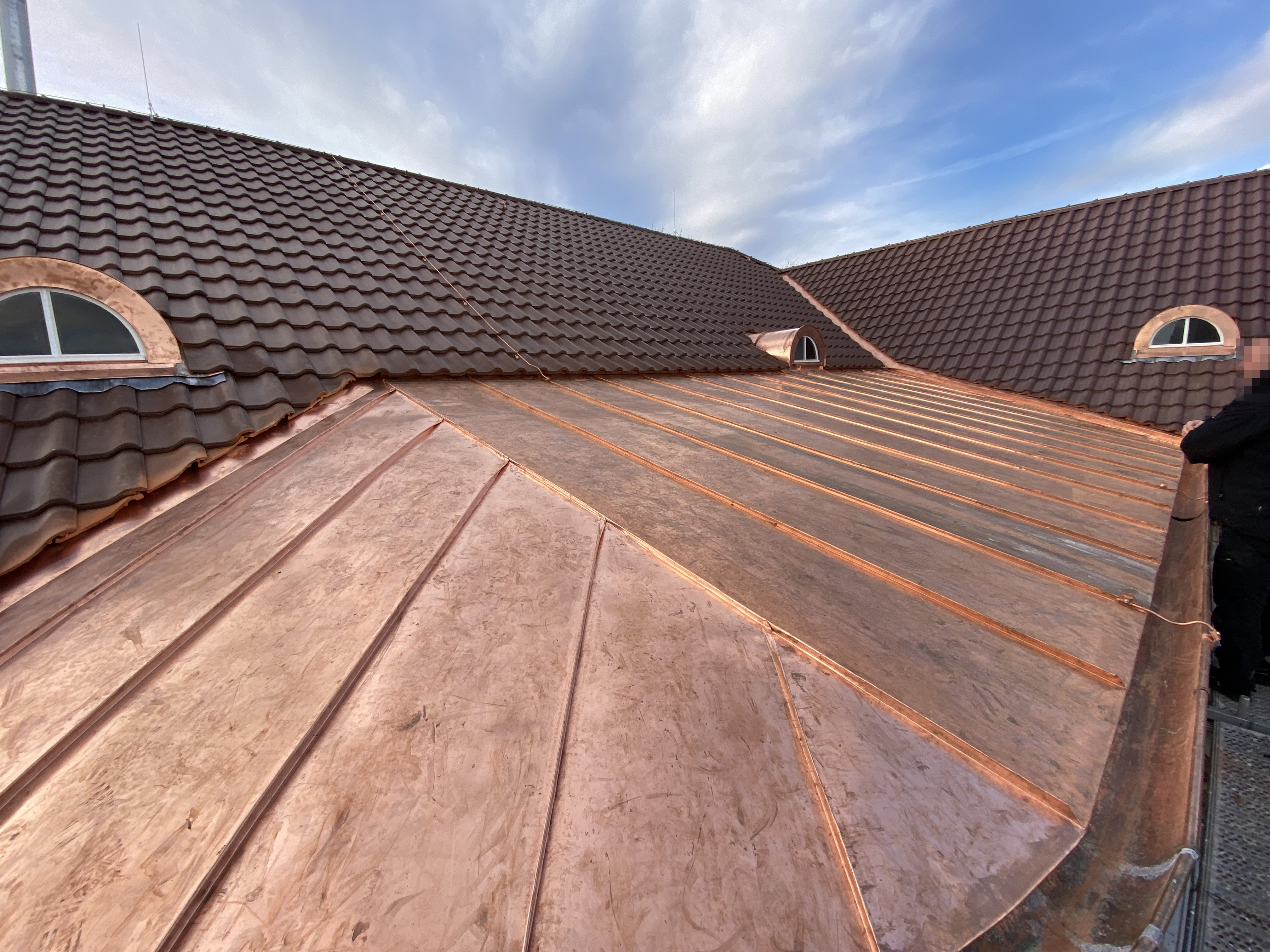Erneuerung Dacheindeckung, inkl. Kupferverkleidungen und Kupferrinne, oberste Geschossdeckendämmung